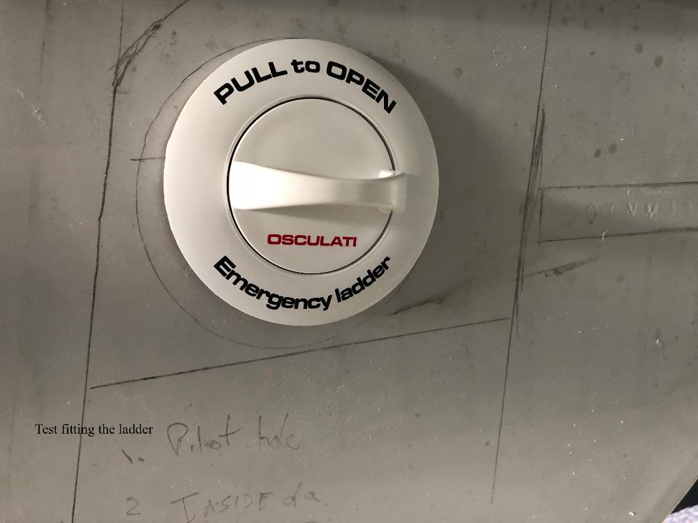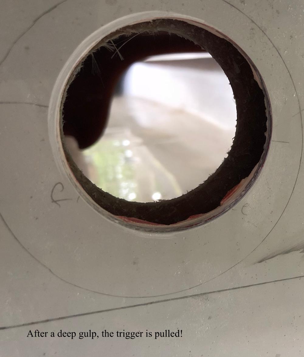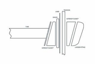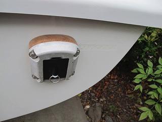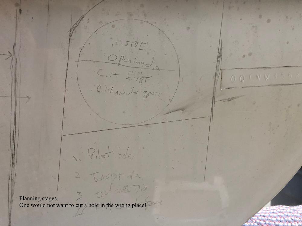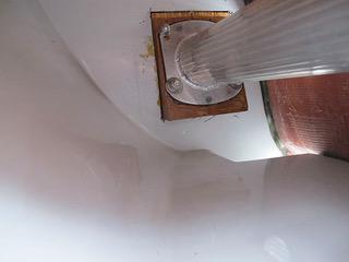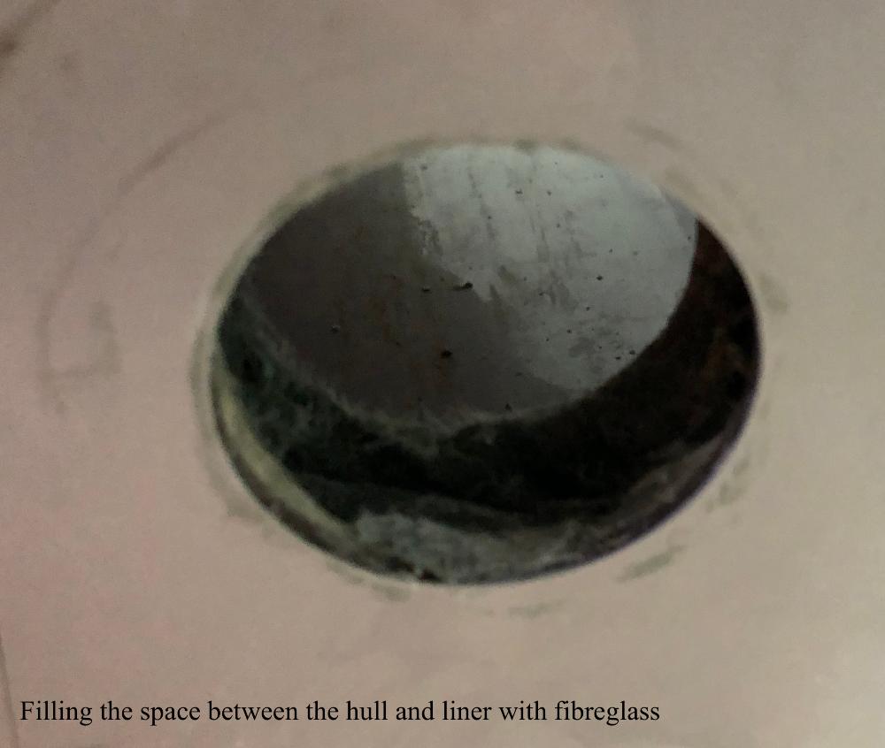 As you can see from the photos below, it was a fairly simple installation. Care was necessary to determine the position of the hole, and filling the annular space between the liner and the hull took a few batches of 'kitty hair' fibreglass mix, and a little sanding.
