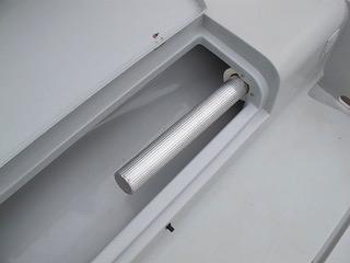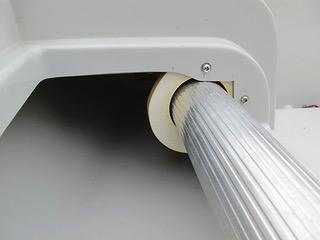 - Near the top of the mast is a sheave (e.g. SLD 50507101) held by pop rivets or screws. Remove this sheave, either by carefully drilling out the pop rivets or removing the screws. If pop rivets, carefully tap the remainder into the mast without enlarging the hole.